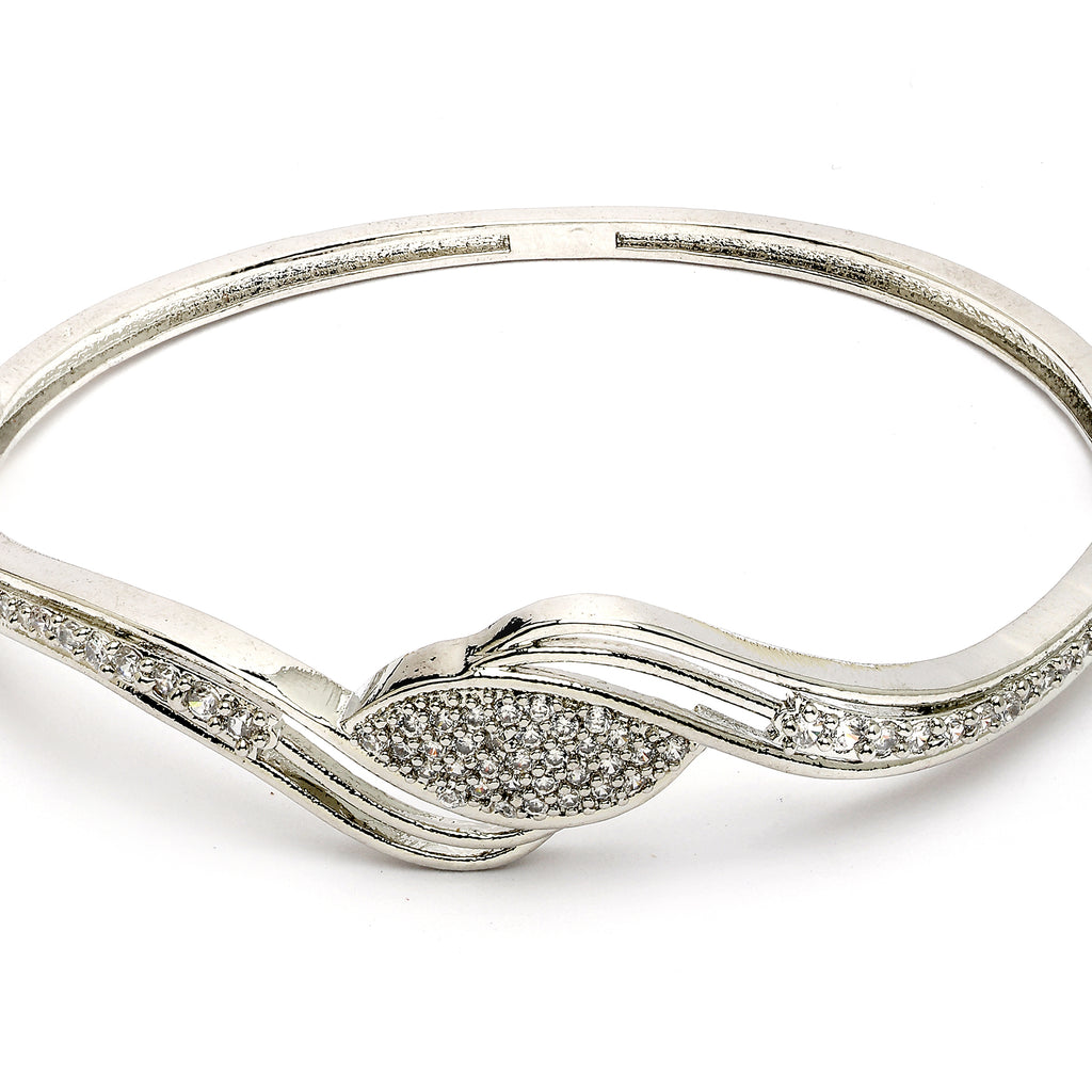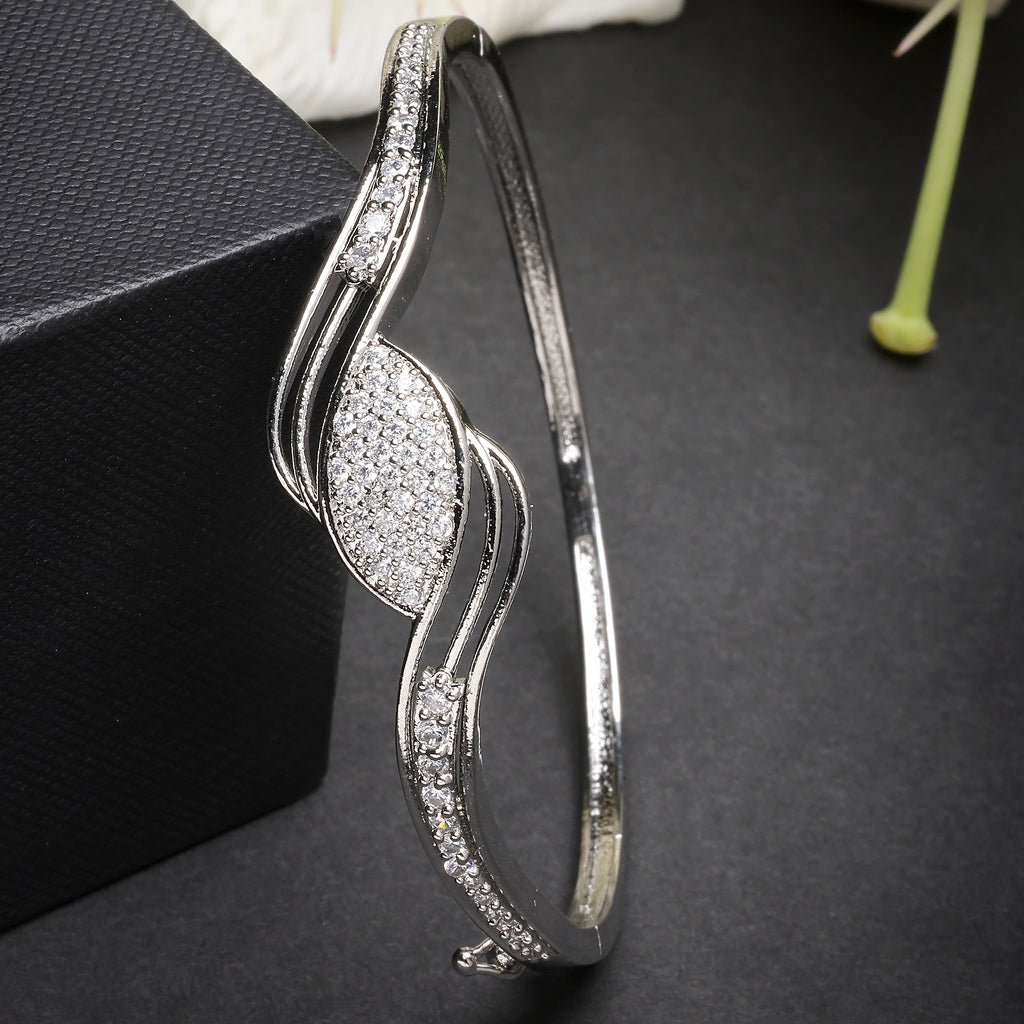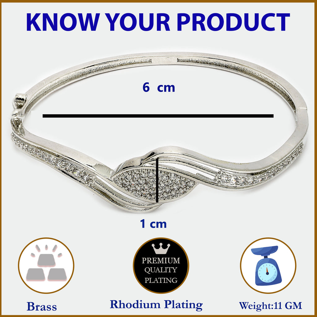 Elegant Design: This rhodium-plated stylish kada bracelet is beautifully studded with white American diamonds, offering a refined and sparkling appeal.