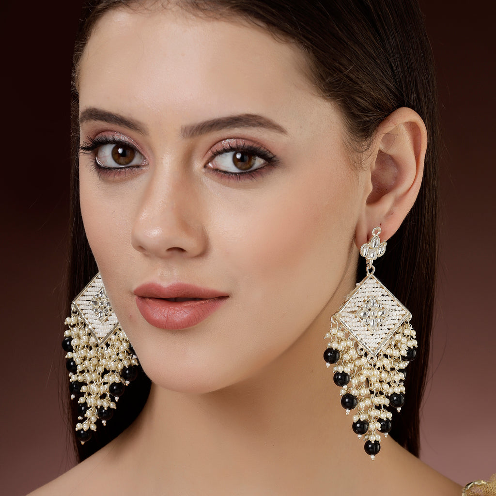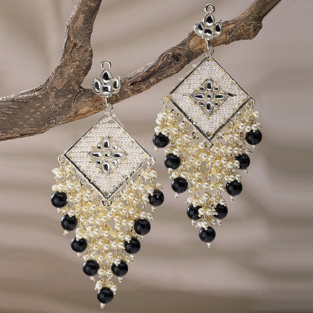 Intricate Design & Craftsmanship: Handcrafted by skilled artisans, these earrings showcase a perfect blend of pearls, Kundan stones, and intricate bead detailing. The elegant finishing and unique design make them a statement accessory for any festive or formal occasion.
