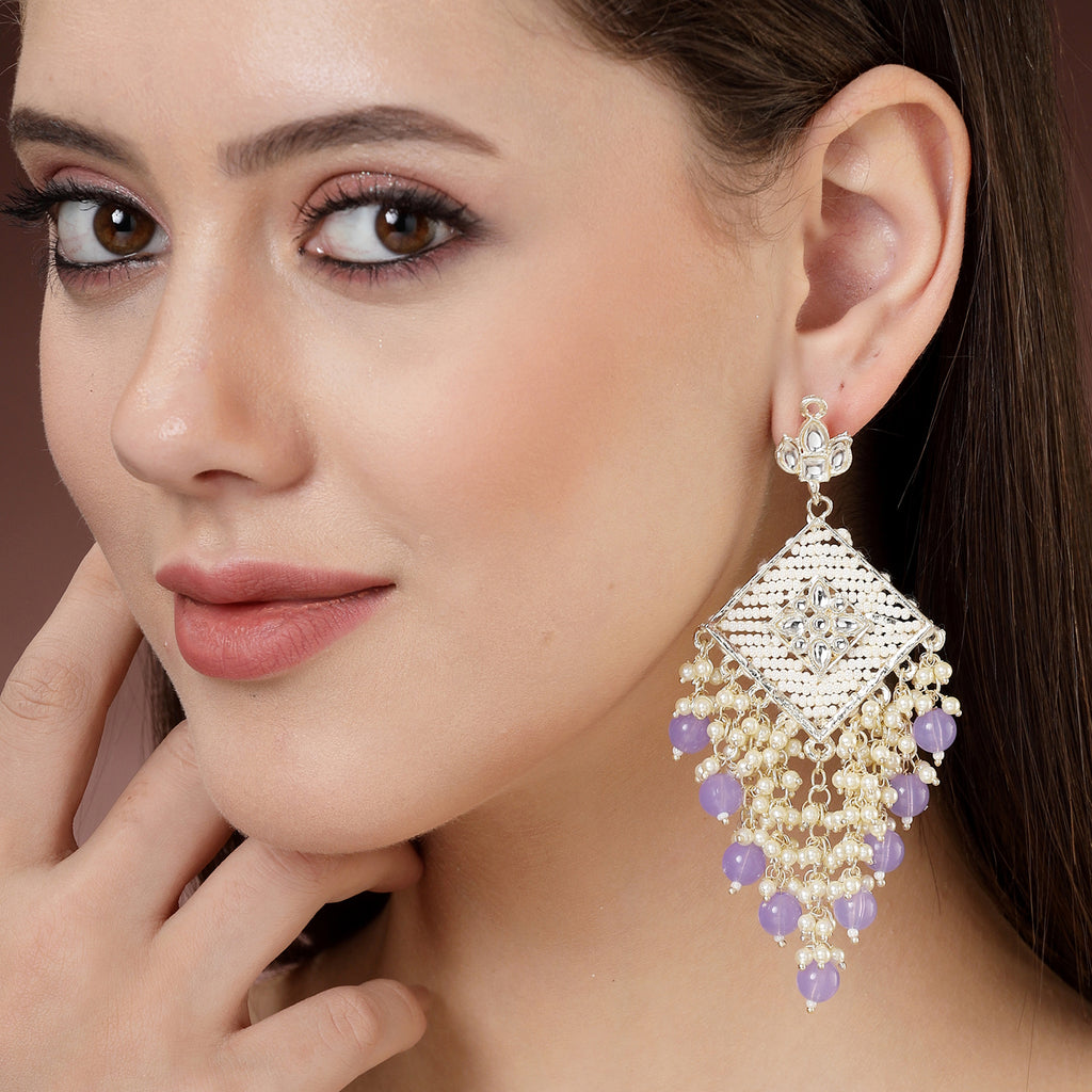 Intricate Design & Craftsmanship: Handcrafted by skilled artisans, these earrings showcase a perfect blend of pearls, Kundan stones, and intricate bead detailing. The elegant finishing and unique design make them a statement accessory for any festive or formal occasion.