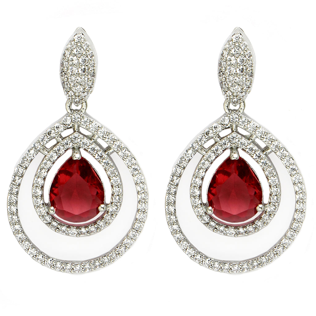 Components: A pair of silver-plated stud earrings featuring dual tear-shaped American diamond crystals. These earrings are packaged in a cute Zeneme jewelry box with a care card included.