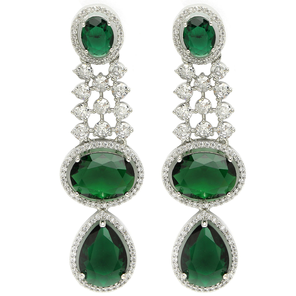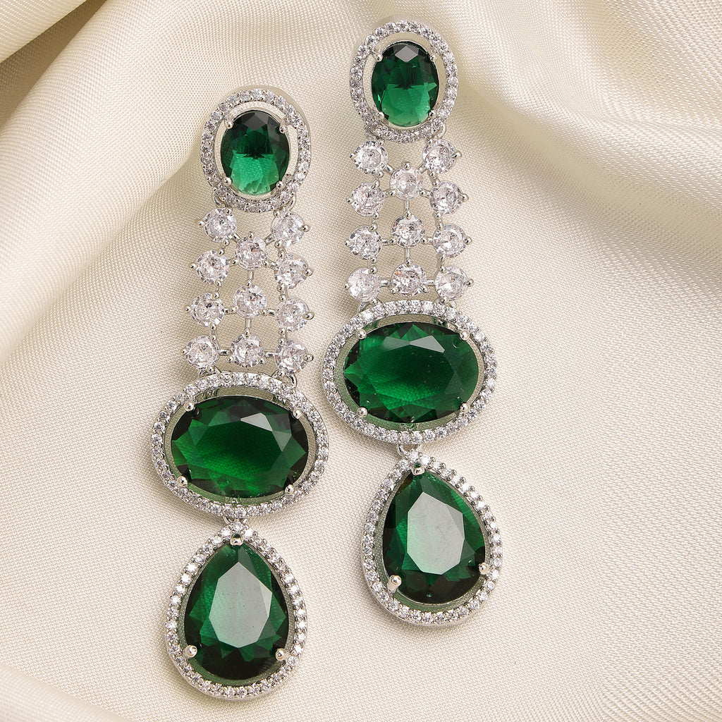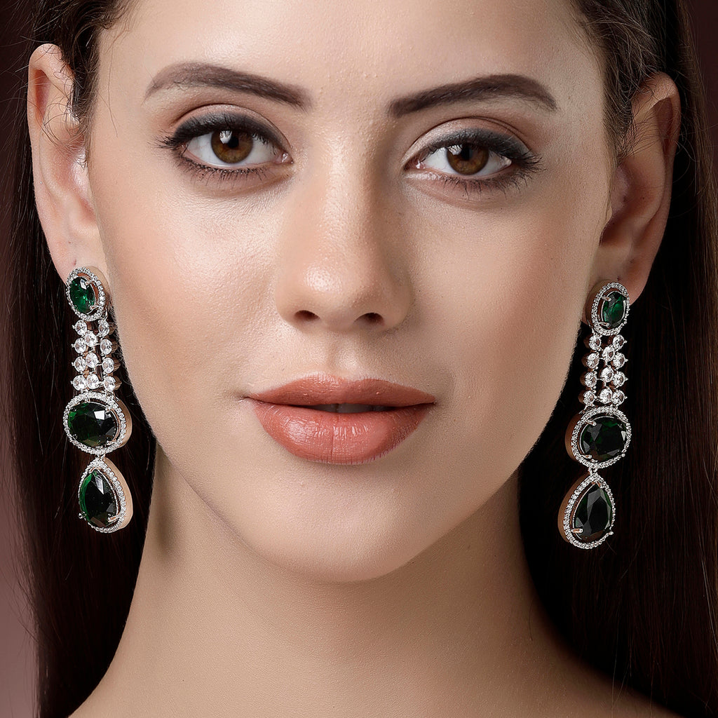 Zeneme American Diamond Drop Earrings: Designed with high-quality AAA cubic zirconia, these earrings are enhanced with skin-friendly plating, created with care to reach your heart.