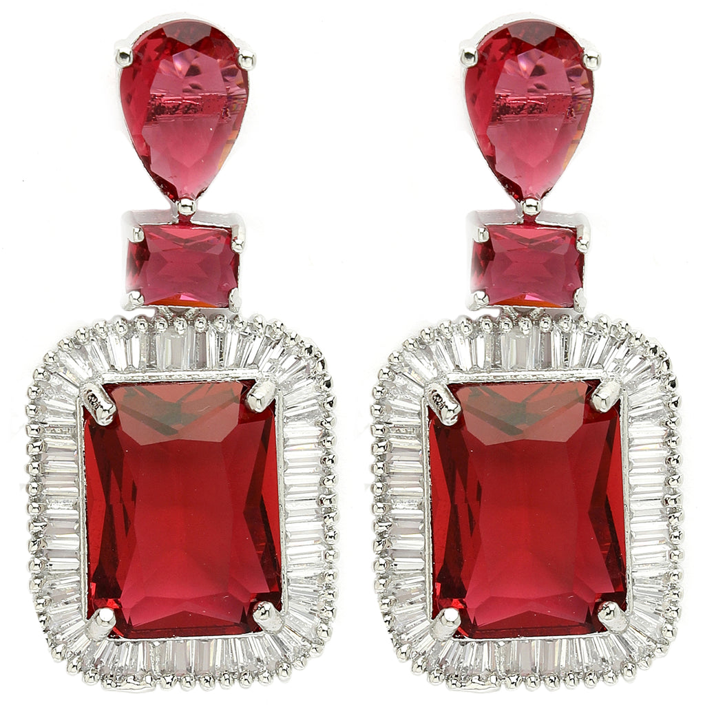 - Components: 1 pair of silver-plated American diamond-embellished crystal earrings. The earrings come in a cute Zeneme jewelry box with a card for jewelry care.