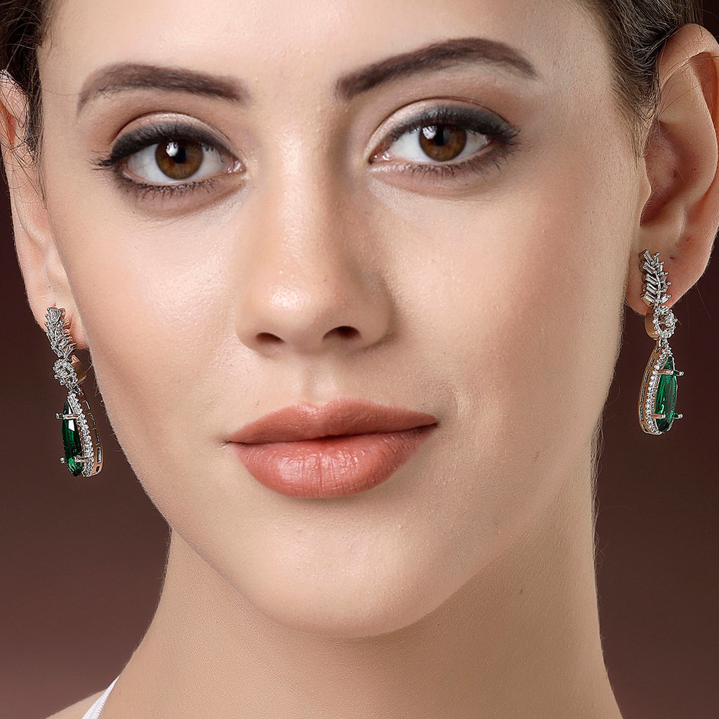 - Design: Featuring an intricate leaf design, these earrings are adorned with finely-cut American diamonds that add a beautiful shine and elegance to any outfit. The contemporary and graceful style of these earrings makes them suitable for all kinds of attire, from casual to formal wear.