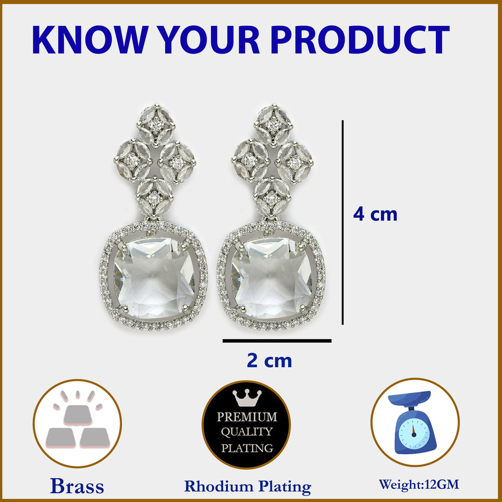 - Design: The earrings feature a contemporary design, with finely-cut American diamonds that add a beautiful shine and grace to any look. The intricate pattern is carefully crafted by skilled artisans, offering a timeless and elegant style.