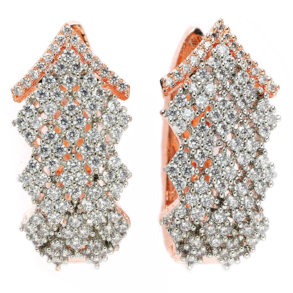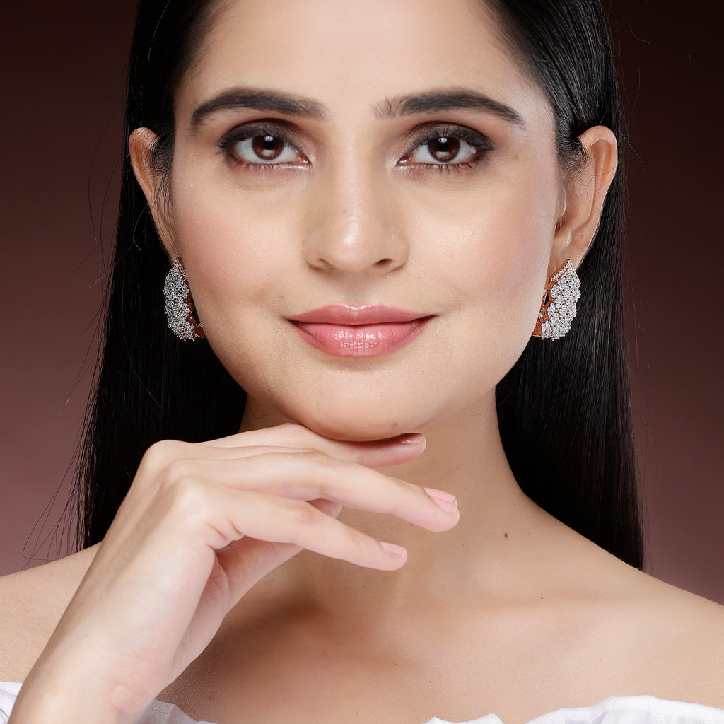 - Material & Craftsmanship: These earrings are crafted from high-quality rose gold-plated brass alloy with genuine American Diamond crystals. The exceptional craftsmanship, honed over 25 years by skilled artisans, ensures a long-lasting, polished finish. The plating is 10 microns thick for durability and shine.