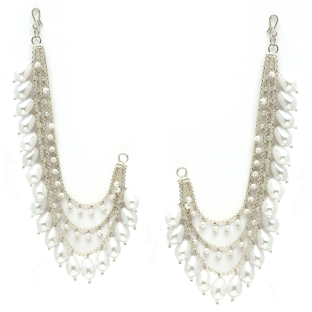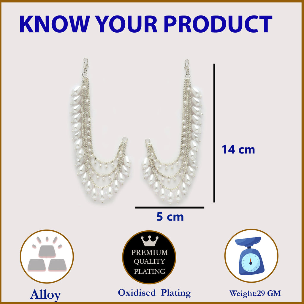 - Elegant Attachment: This Silver-plated pearl long chain is a beautiful addition to your favorite earrings, adding a stylish and traditional flair. Perfect for creating a bridal look or for weddings and festive wear.