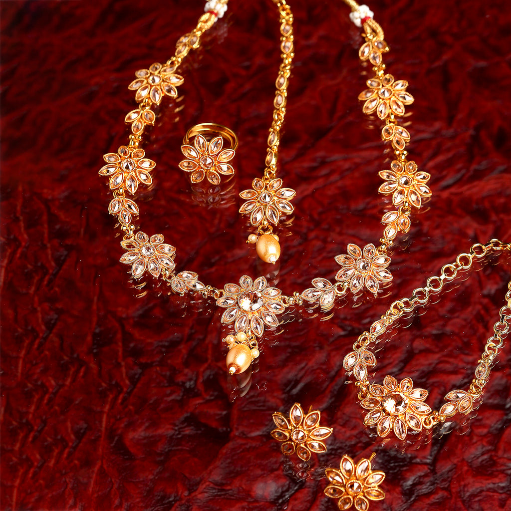 Gold-Plated & Beige Kundan-Studded Floral Jadau Jewellery Set
