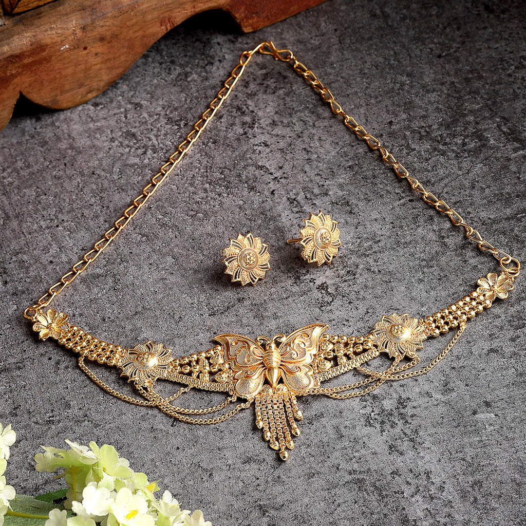 Gold-plated Butterfly Intricated Detail Jewellary Set For Women And Girls