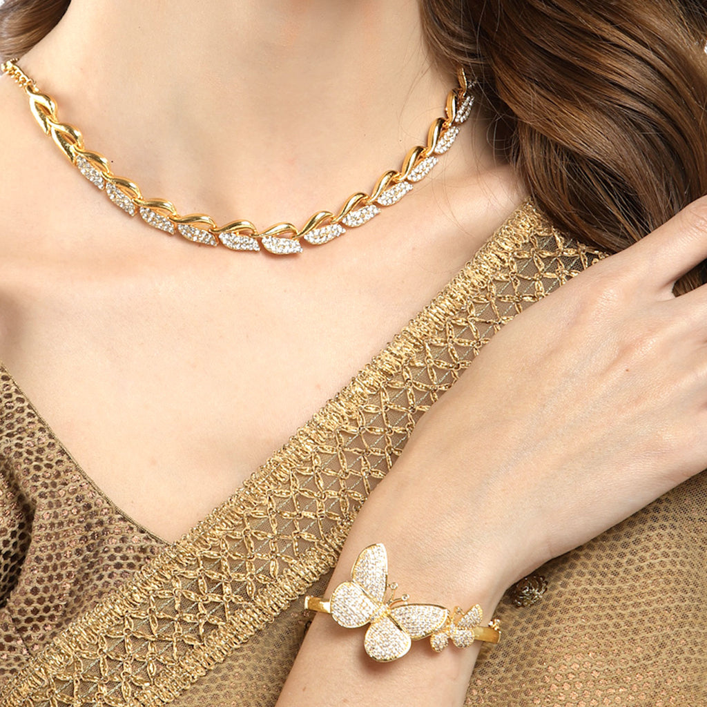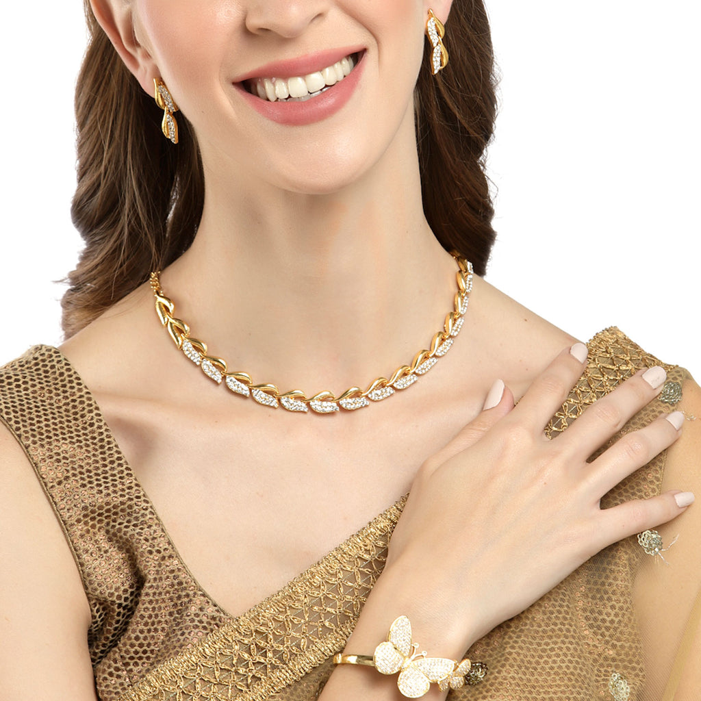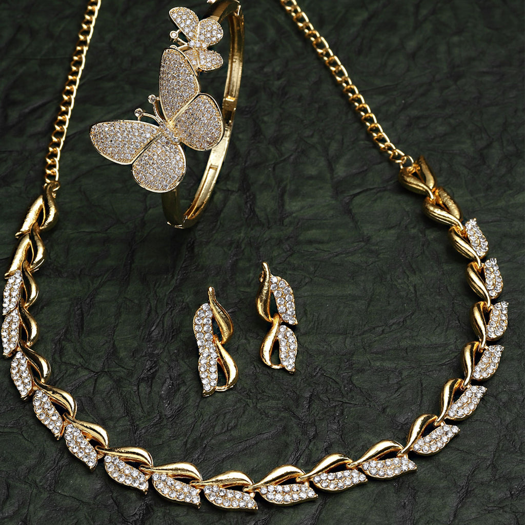 Gold-Plated Butterfly White Cubic Zirconia Studded Jewellery Set Combo