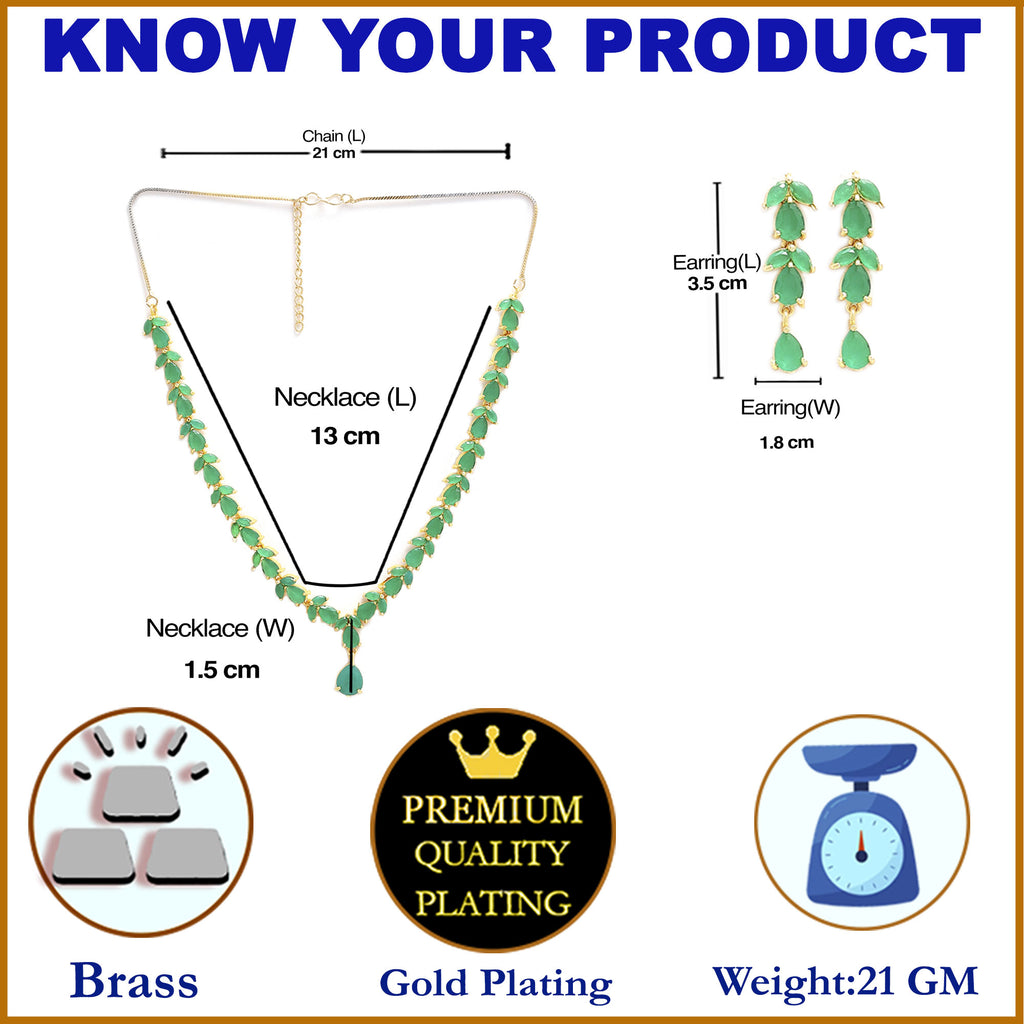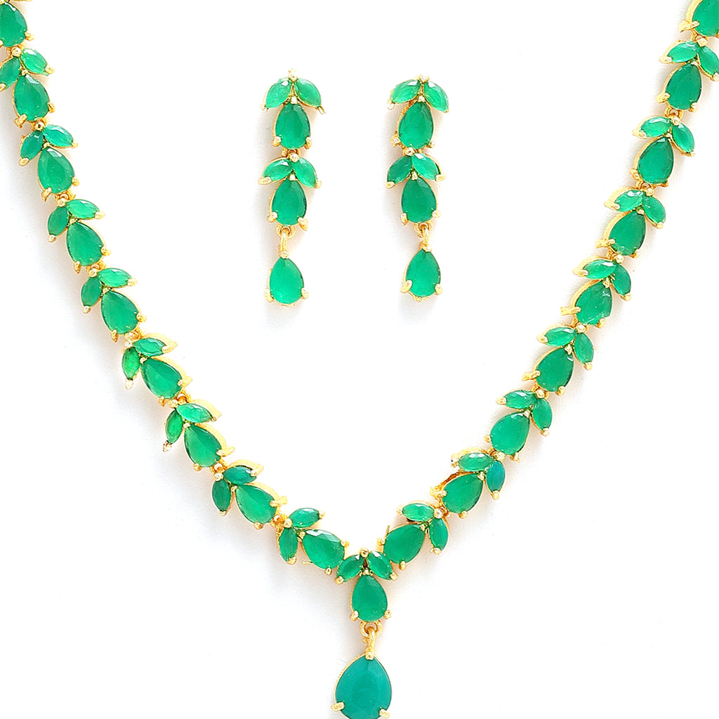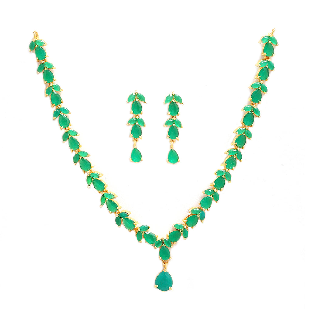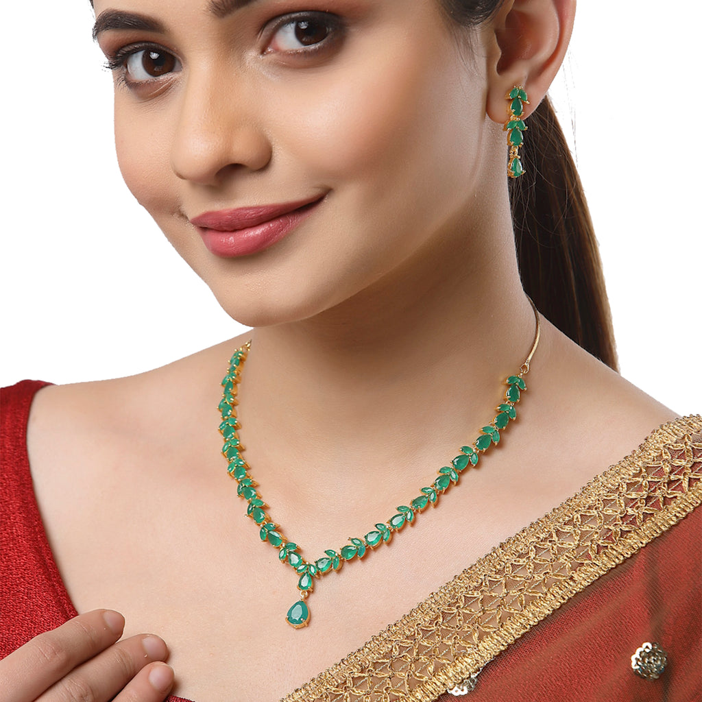 This jewellery set consists of a necklace and a pair of earrings. Gold-Plated necklace, has Green american diamond beaded detail, secured with a drawstring closure, comes with a pair of leaf design matching earrings, each secured with a Post and Back closure.
