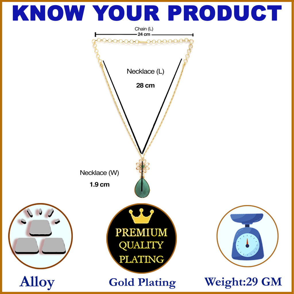 Gold-Plated teardrop-shaped pendant, has green and off-white CZ-studded detail comes with a chain, secured with a lobster clasp.