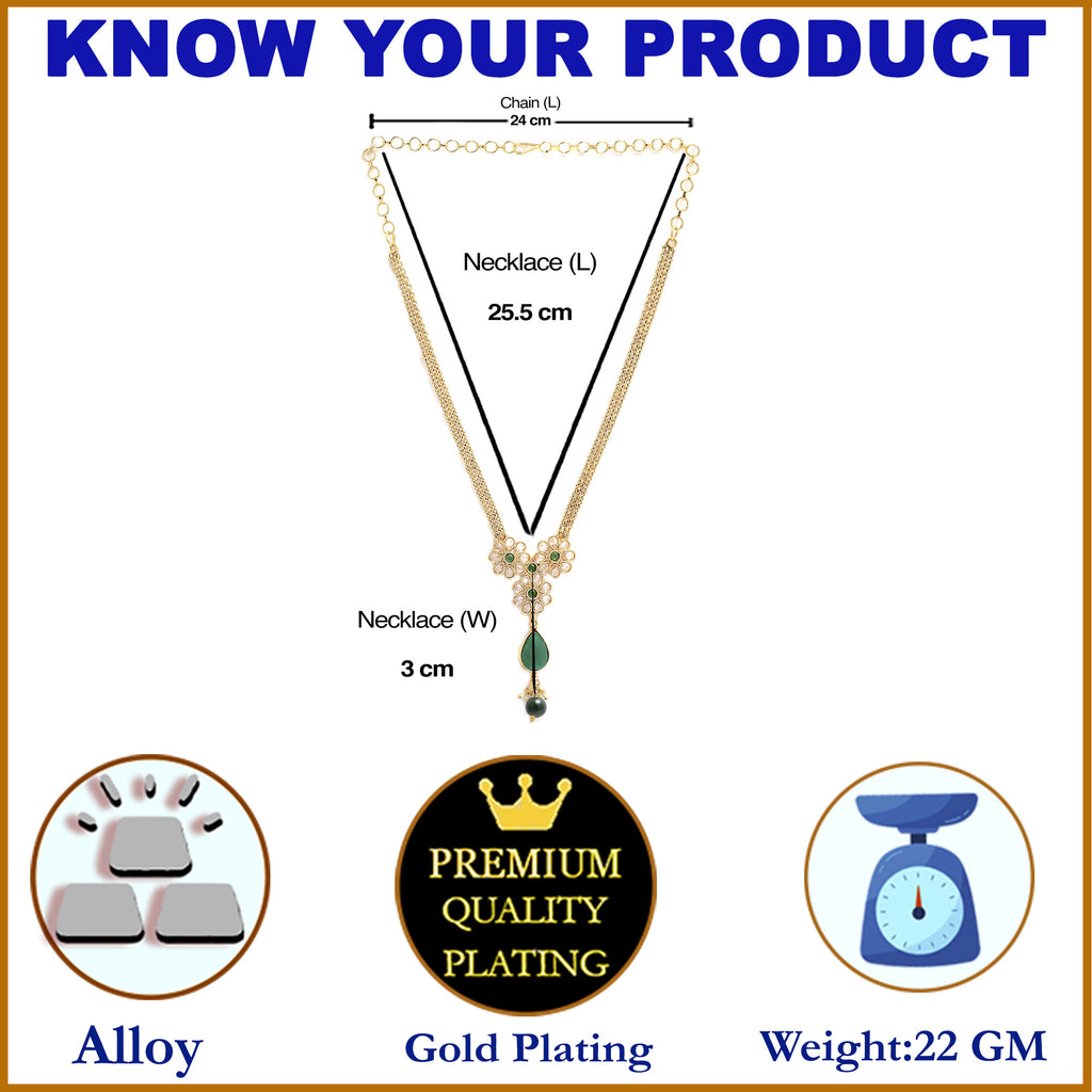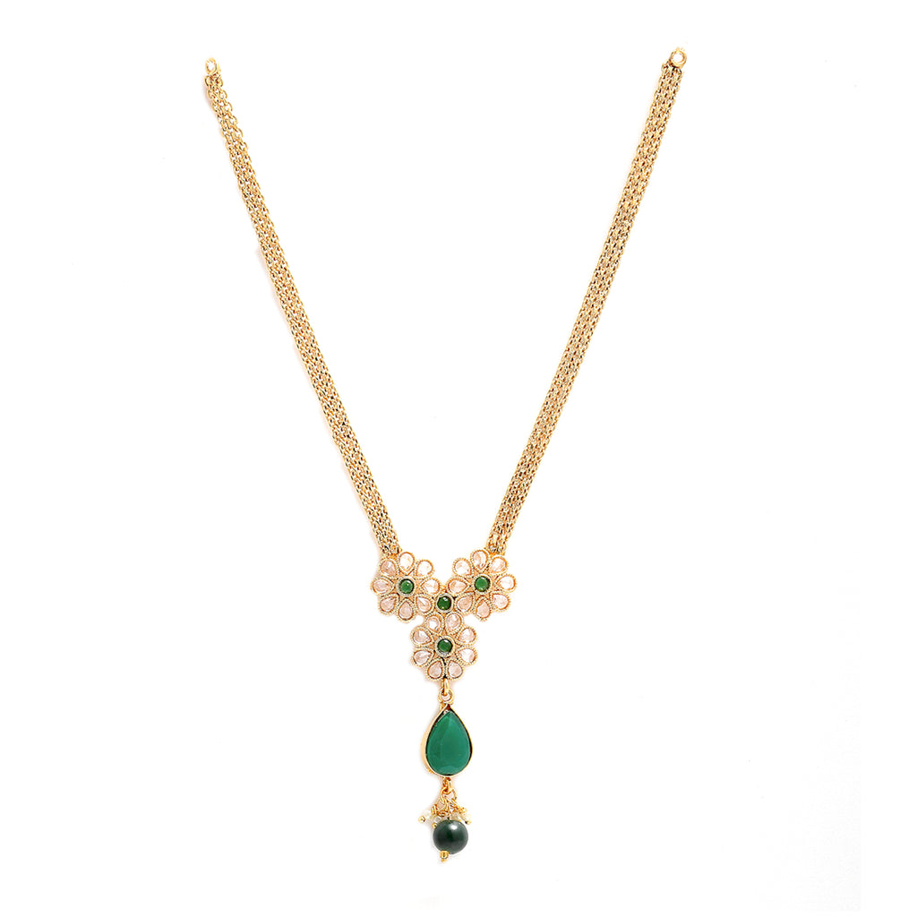 Gold-Plated Green & White Stone Studded Floral Necklace