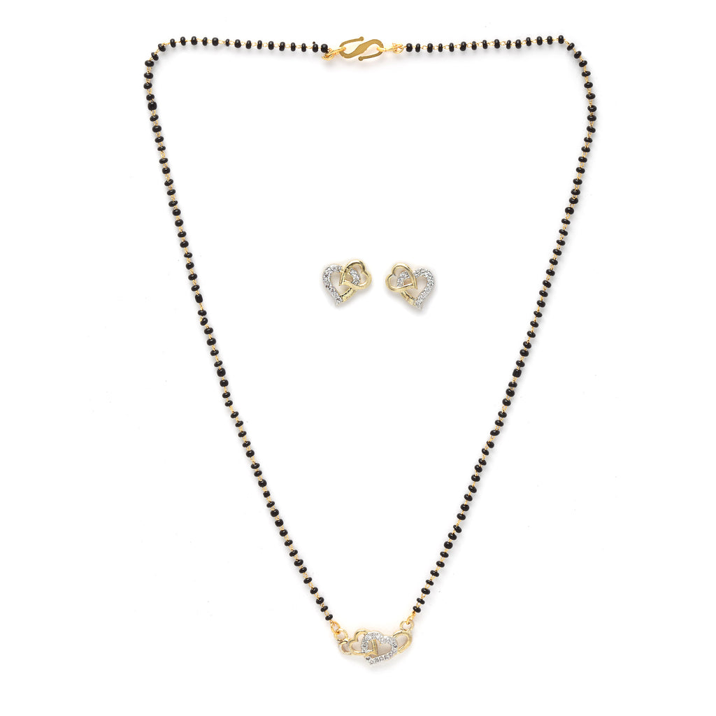 Gold-Plated & White AD-Studded & Beaded Heart Shaped Mangalsutra Set