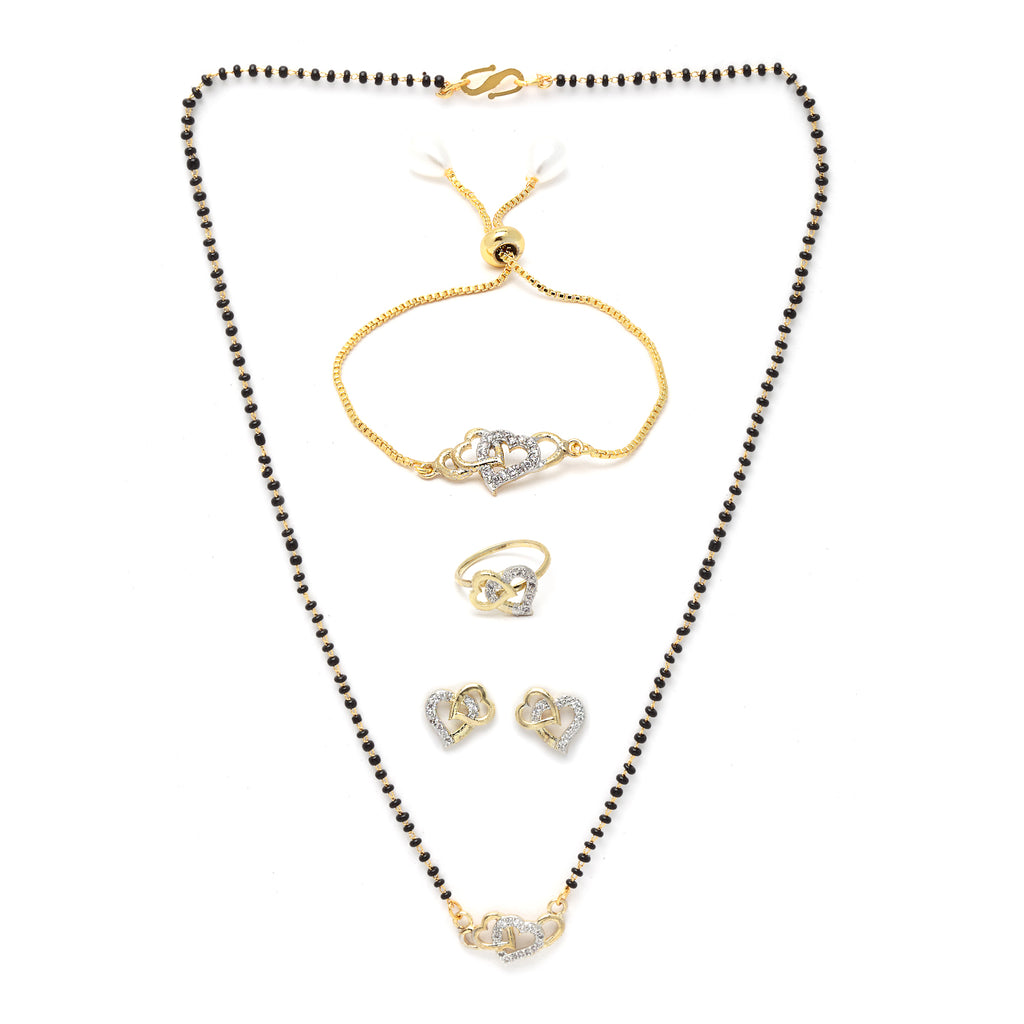 No of Components Inside:- 1 Mangalsutra, 1 Set of Earrings, 1 Bracelet, 1 Ring