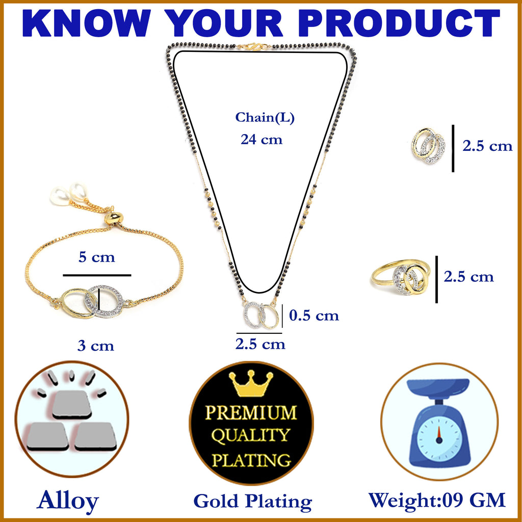 No of Components Inside:- 1 Mangalsutra, 1 Set of Earrings, 1 Bracelet, 1 Ring