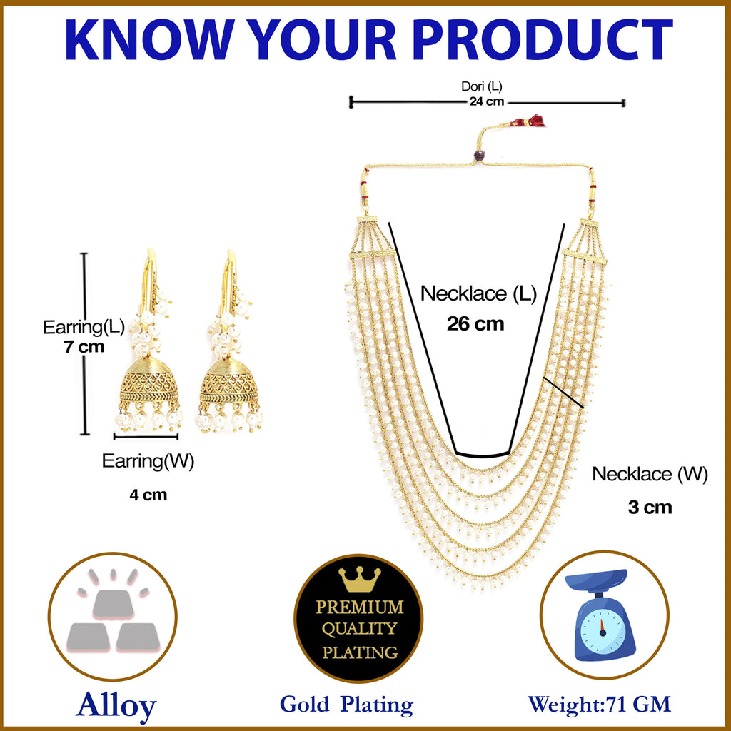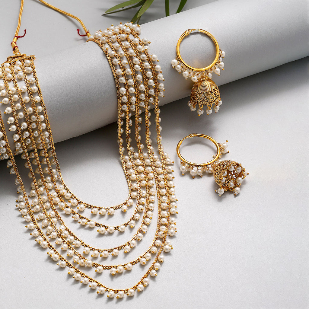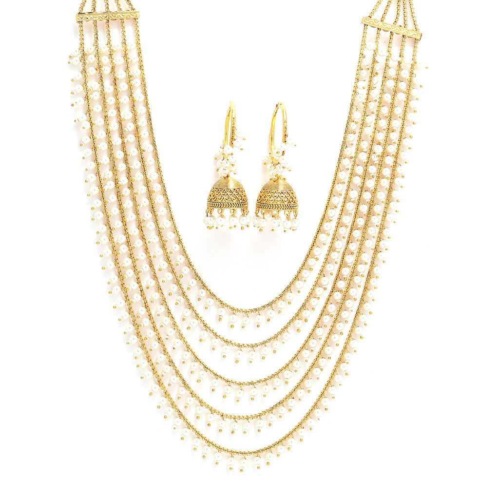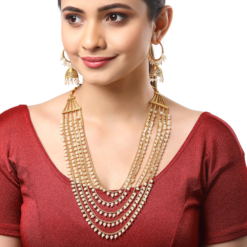 Gold-Plated White Pearl Drop 5 Layered Necklace