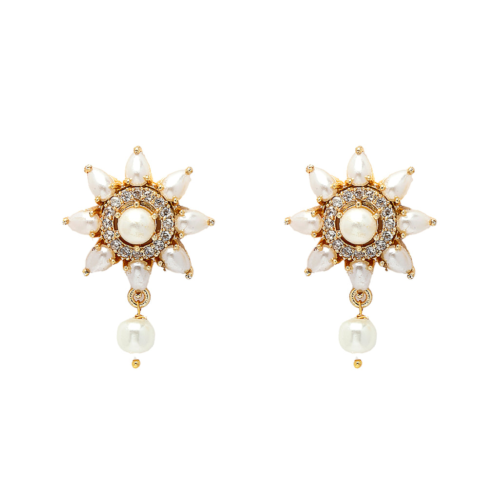 This jewellery set consists of a necklace and a pair of earringsGrey Gold-plated Kundan studded and beaded floral shaped handcrafted multistrand choker necklace, secured with a drawstring closureA pair of matching floral studs, secured with post and back closure