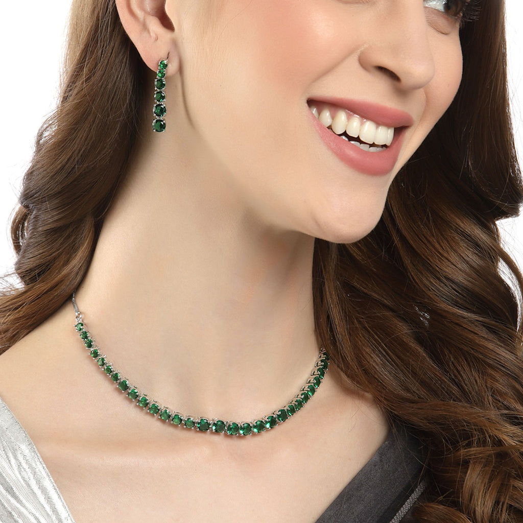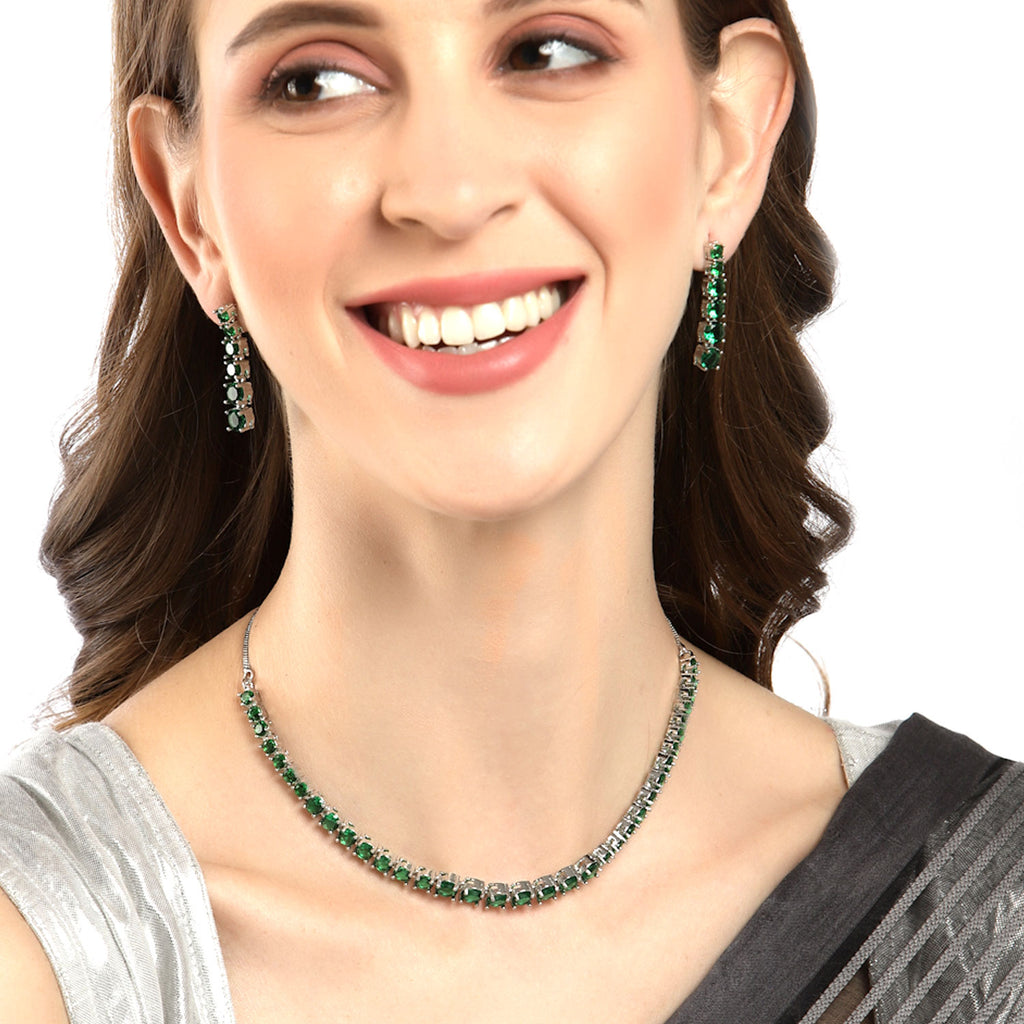 Rhodium-Plated Green AD-Studded Jewellery Set