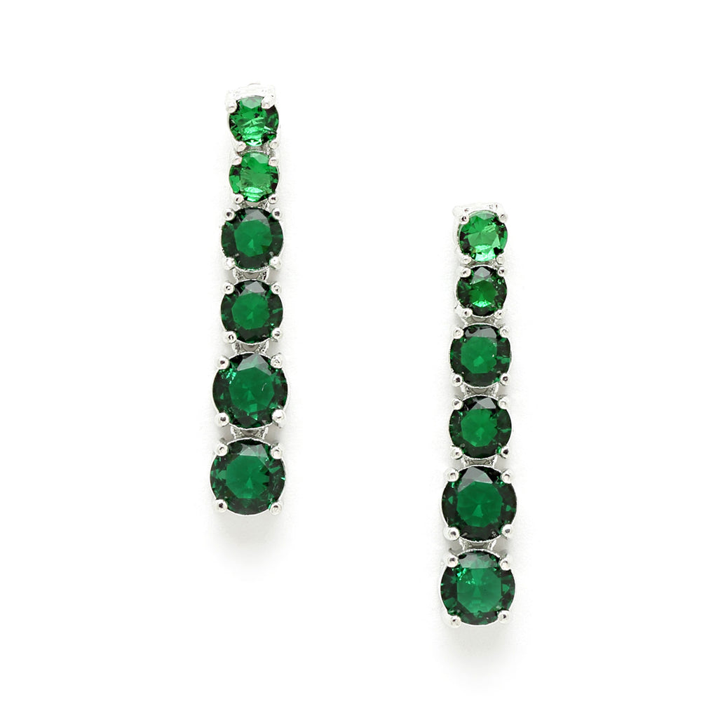 This jewellery set consists of a necklace and a pair of earrings. Rhodium-plated necklace, has Green American Diamond-studded detail, secured with a S-hook closure. A pair of matching drop earrings, each secured with a post and back closure.