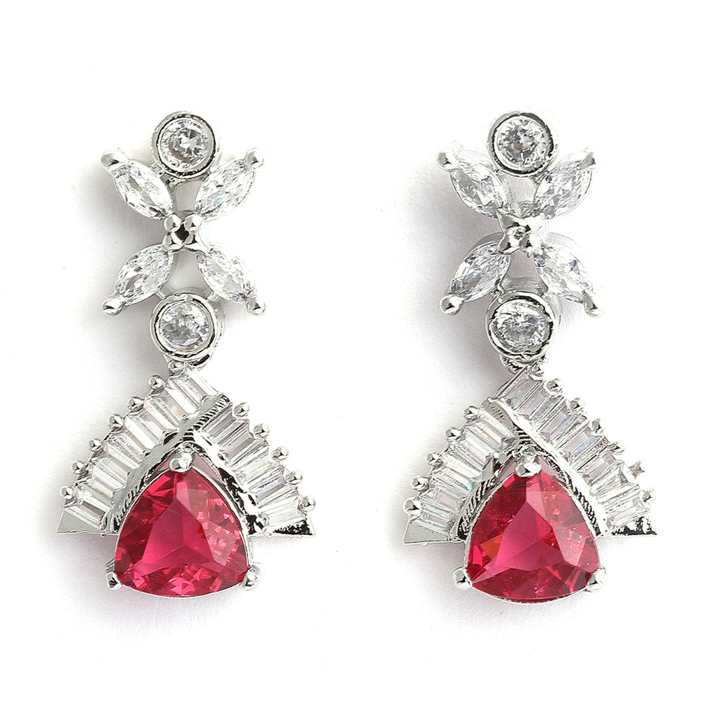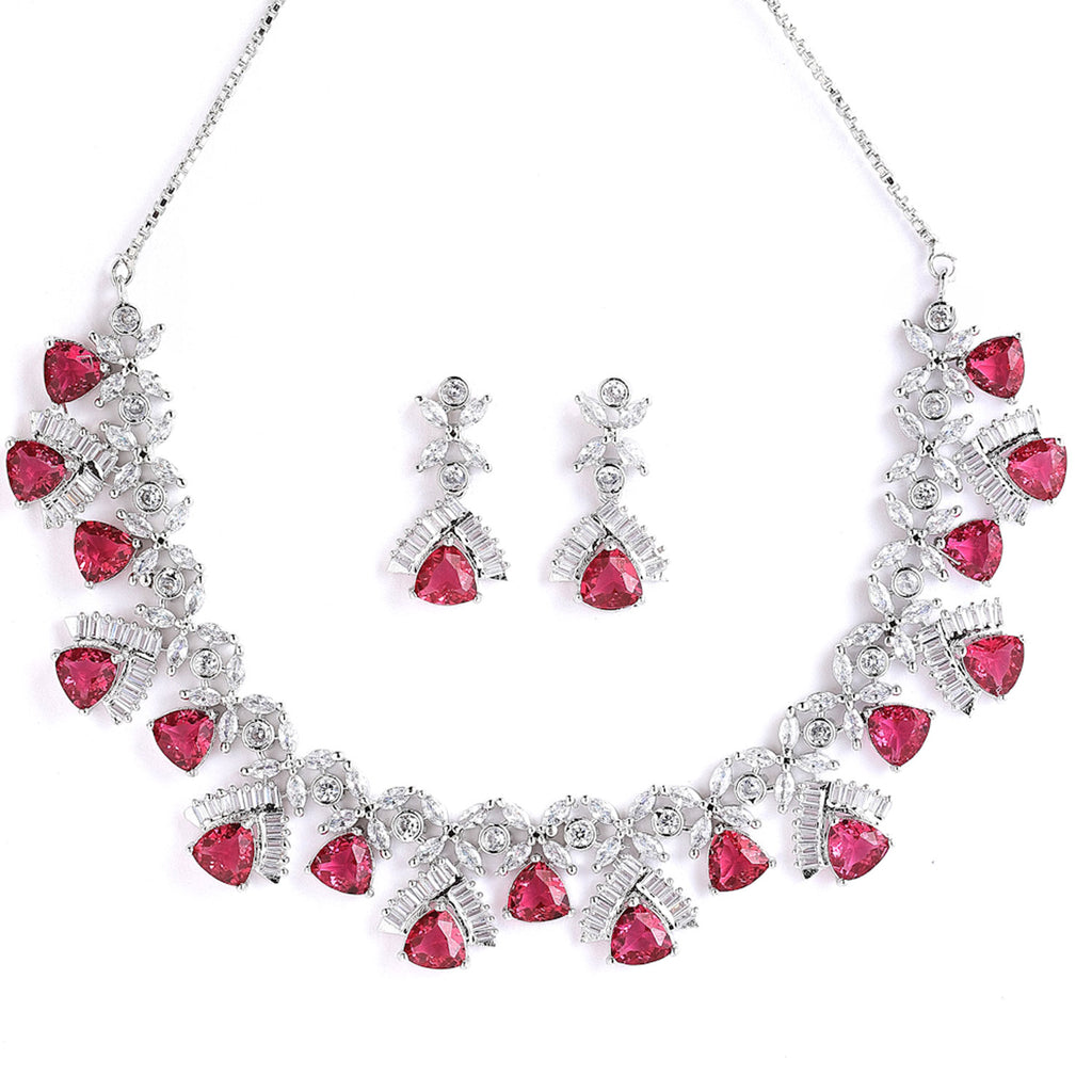 This jewellery set consists of a necklace and a pair of earrings. Rhodium-Plated necklace, has silver and red American Diamond-studded detail, secured with a S-Hook closure. Comes with a pair of matching earrings, each secured with a post and back closure.