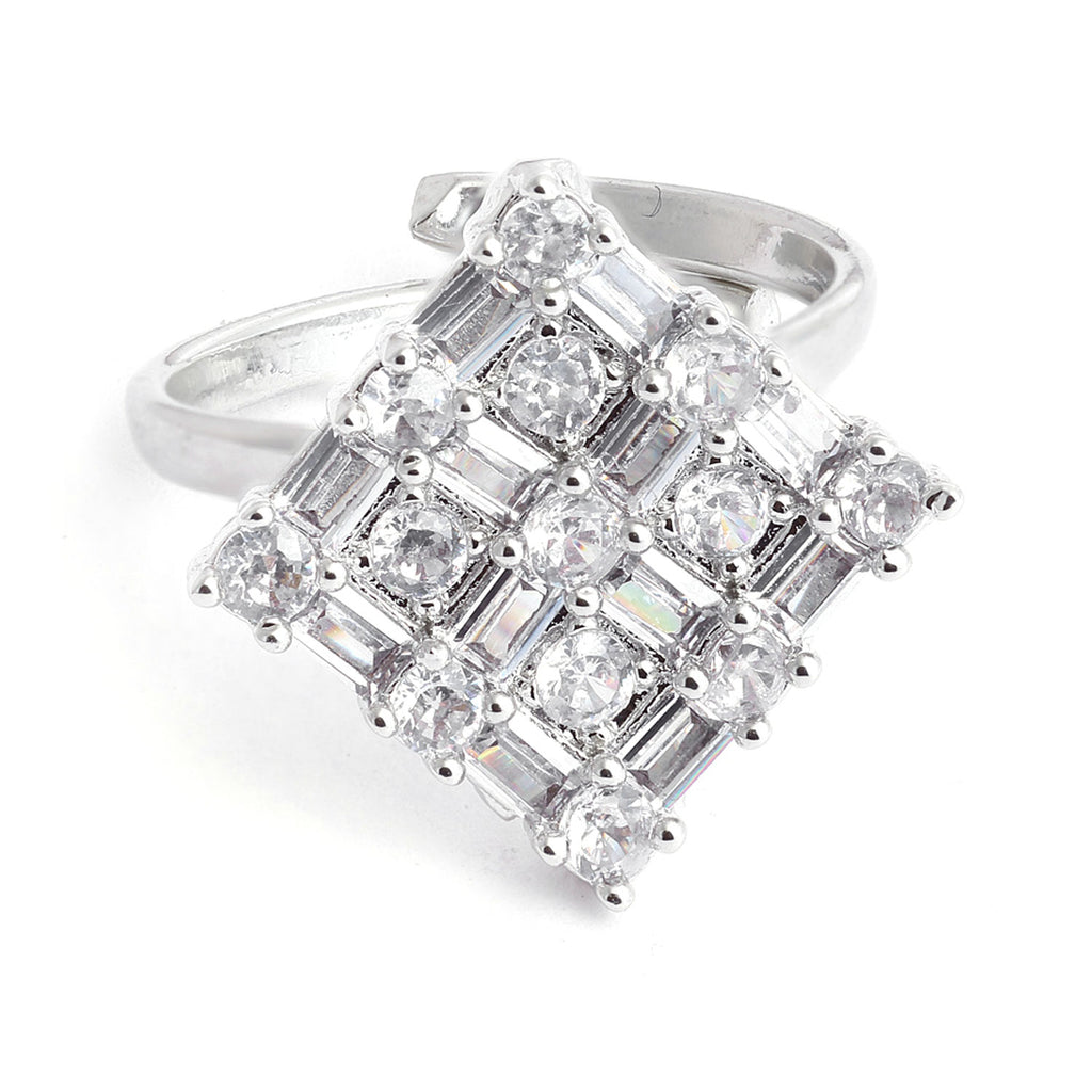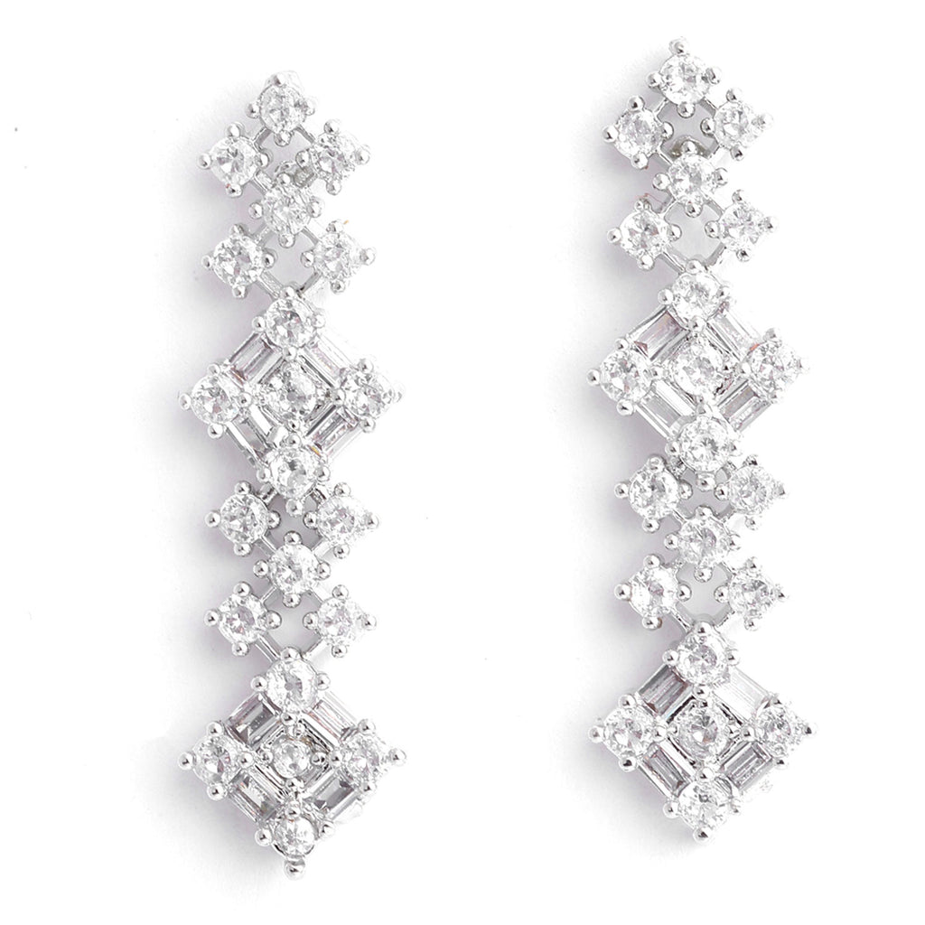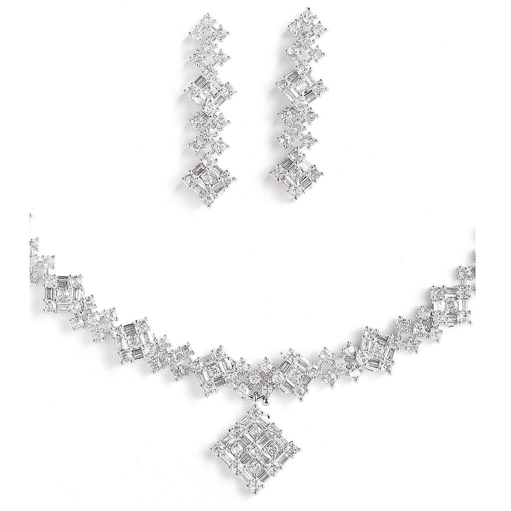 Rhodium-Plated Silver-Toned White American Diamond Studded Jewellery Set