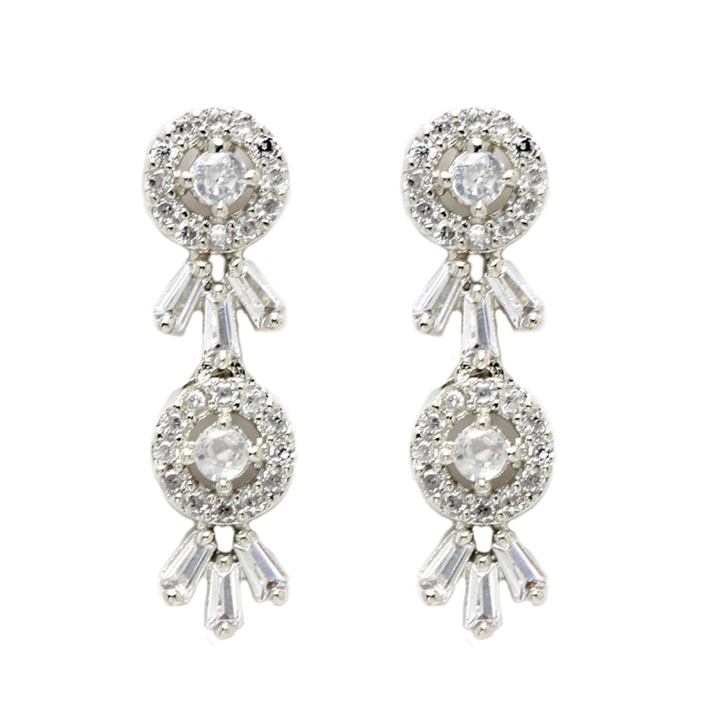 This jewellery set consists of a necklace and a pair of earrings. Rhodium-plated necklace, has white American Diamond-studded detail, secured with a S-hook closure. A pair of matching drop earrings, each secured with a post and back closure.
