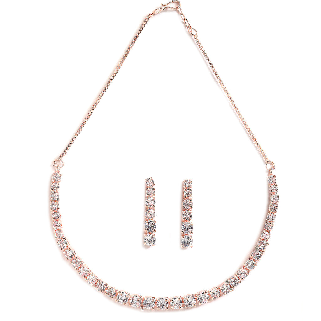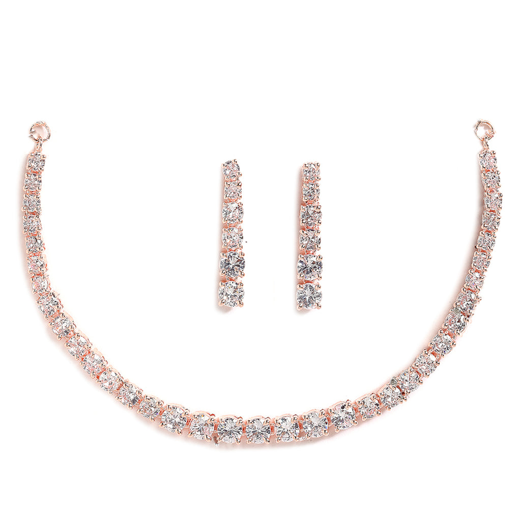 Rose Gold-Plated White AD Studded Jewellery Set