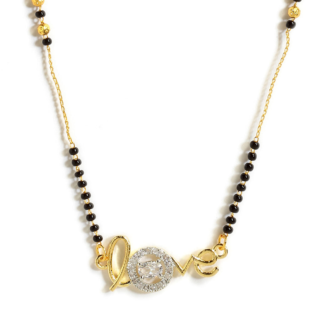 Set of three mangalsutras. Set of three black Gold-Plated mangalsutra has white American Diamond-studded & black beaded pendant, secured with S-Hook closure.