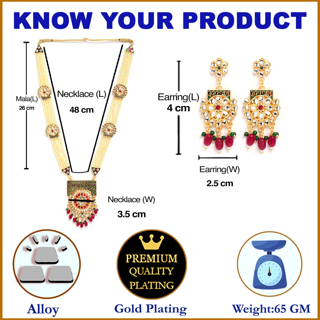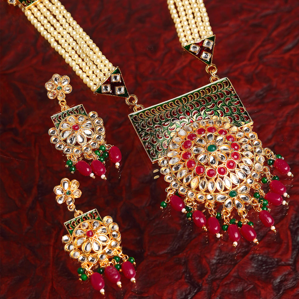 White & Gold-Plated Meenakari & Kundan Studded Pearl Layered Jewellery Set