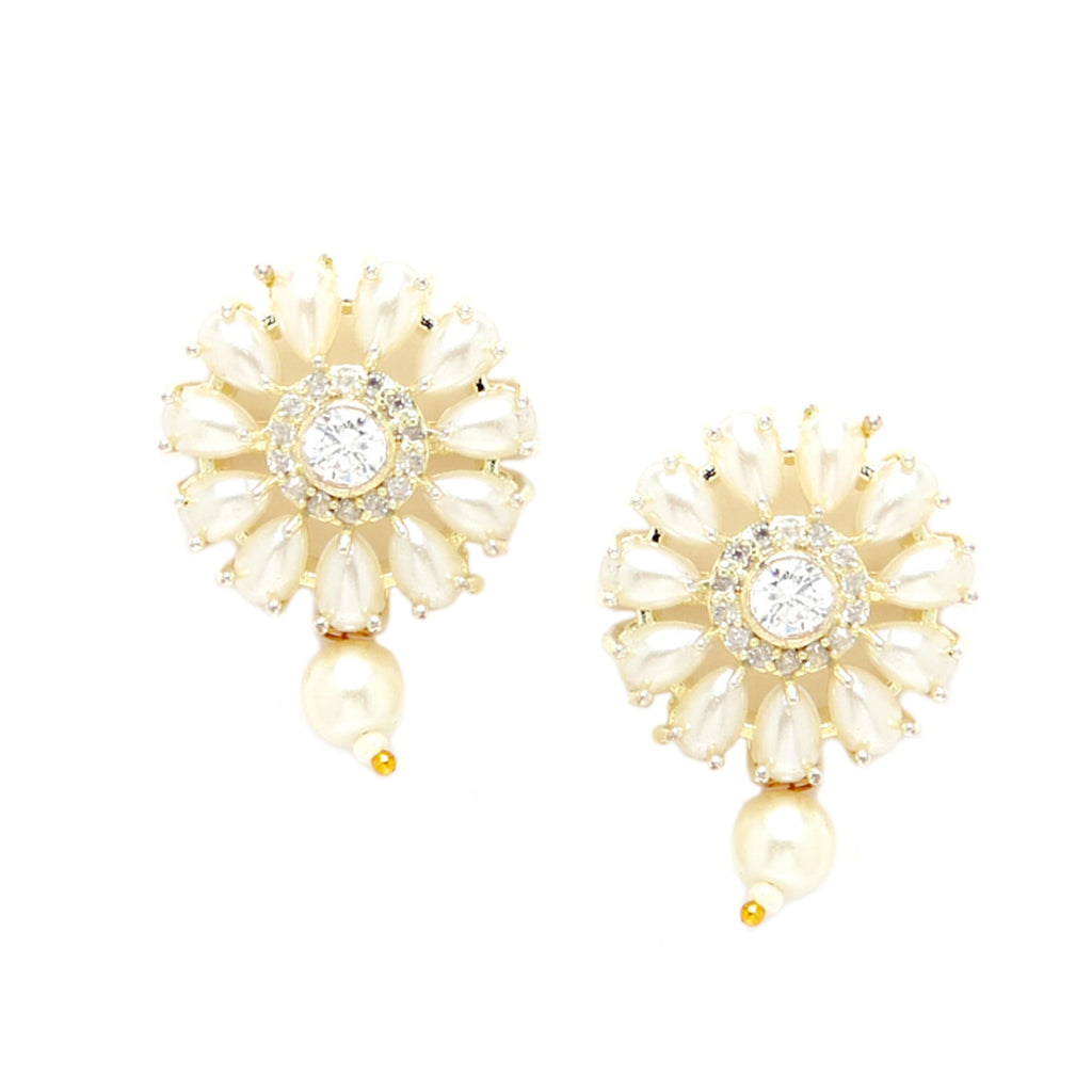 Silver-Toned White Stone-Studded Pearl-Beaded Jewellery Set