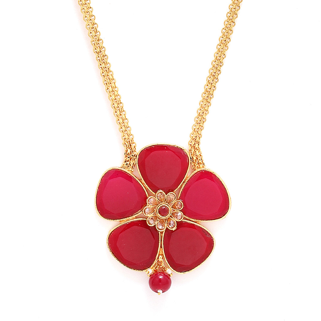 Gold Plated Red Stone Studded Flower Pendant